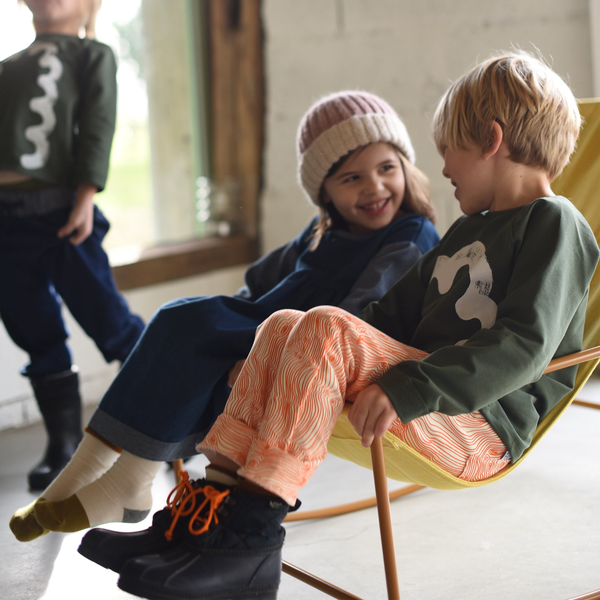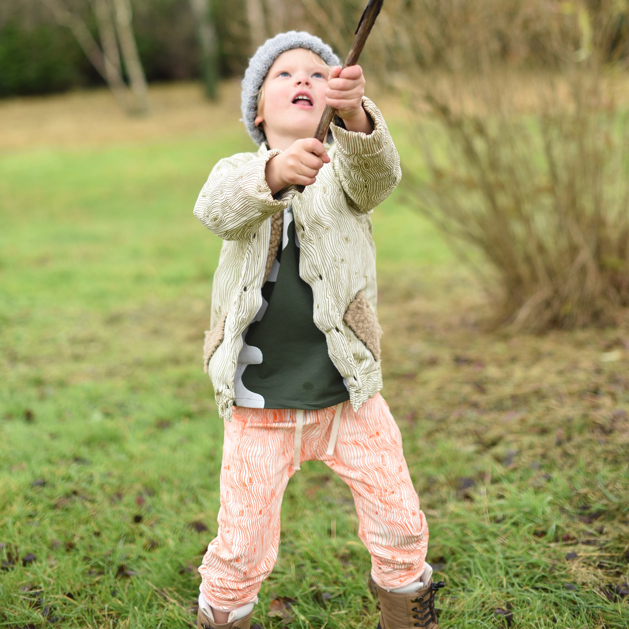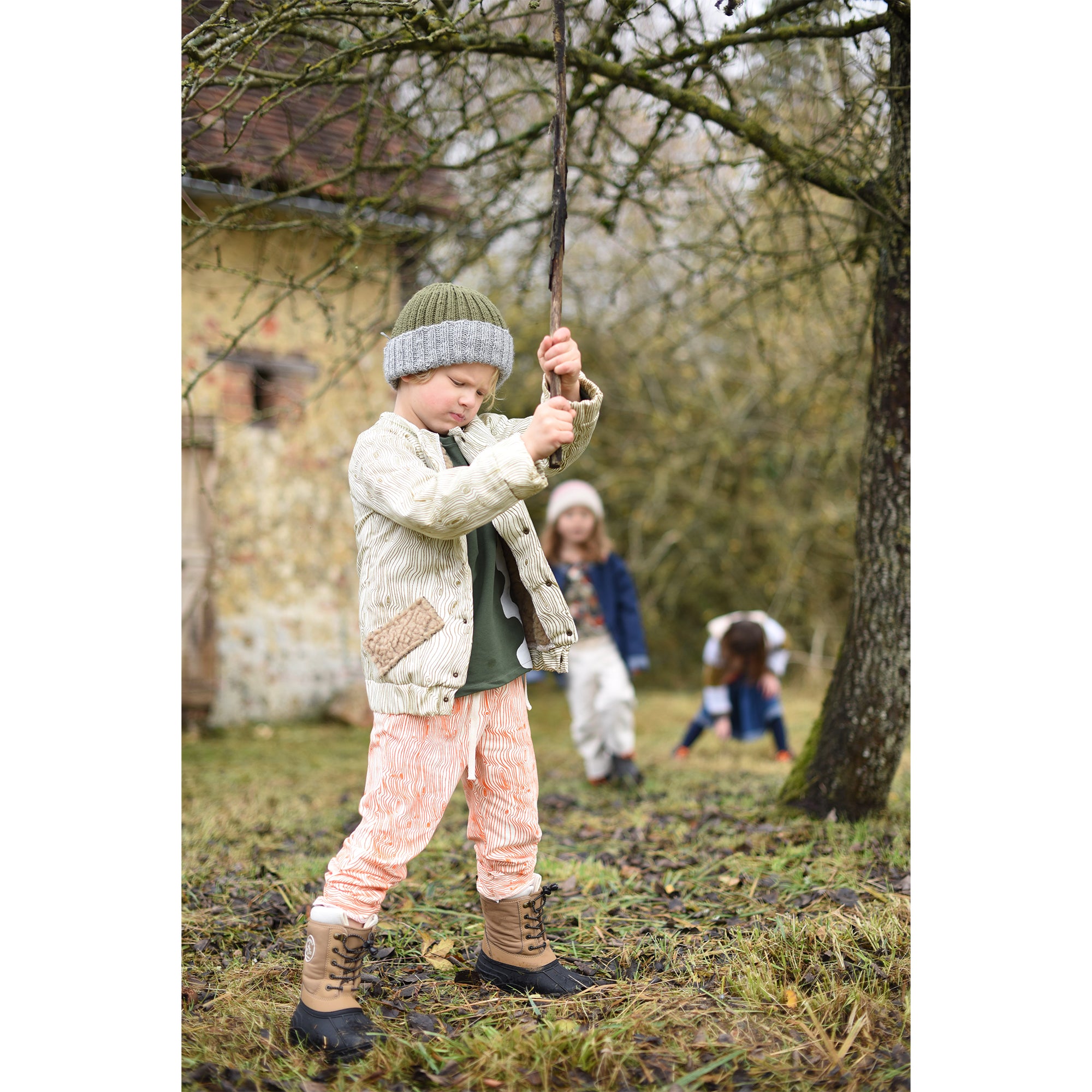 En molleton tout doux, l’imprimé est dessiné par Elvire Bonduelle l’invitée de Fanny sur la collection. Le jogging peut être porté avec le teddy JANJAN ou le pull SOLEIL pour décaler le côté sport.